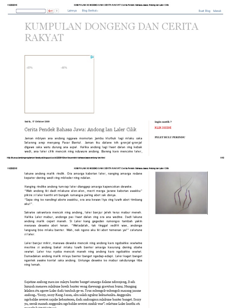 Kumpulan Dongeng Dan Cerita Rakyat_ Cerita Pendek Bahasa Jawa_ Andong Lan Laler Cilik