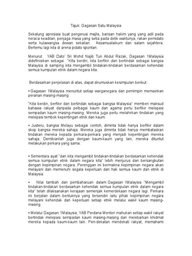 PIDATO 1 MALAYSIA 2017 - TEKS PIDATO 1 MALAYSIA SEHATI SEJIWA …
