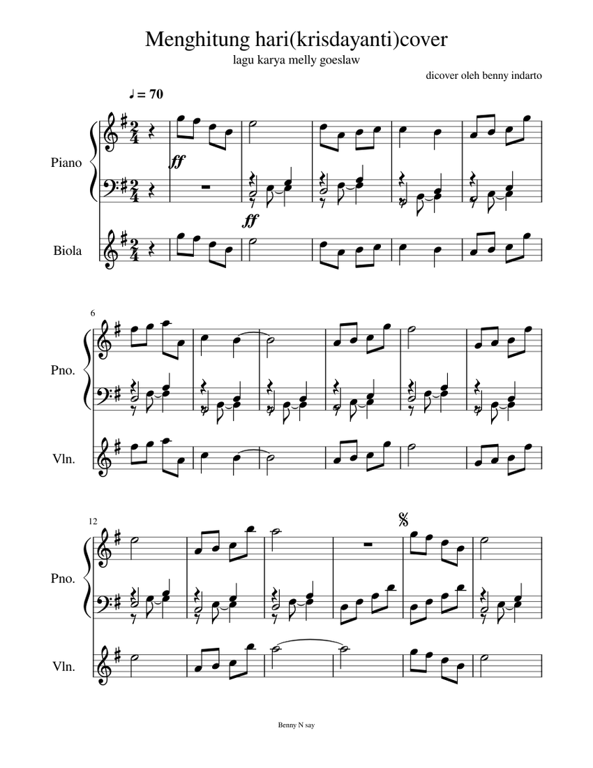 Menghitung hari(piano version) Sheet music for Piano, Violin (Solo …