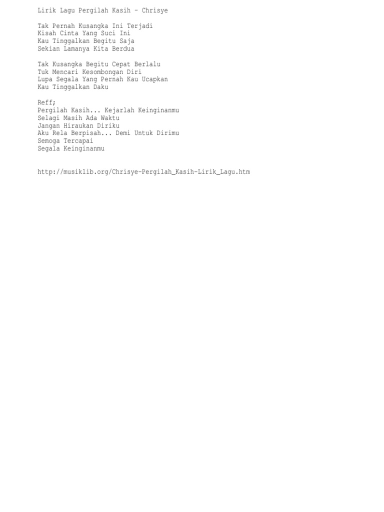Kumpulan lirik lagu - Pergilah kasih [Lirik Lagu] | Facebook