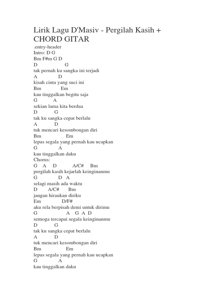 Chord Pergilah Kasih By d’Masiv | Chordlicious