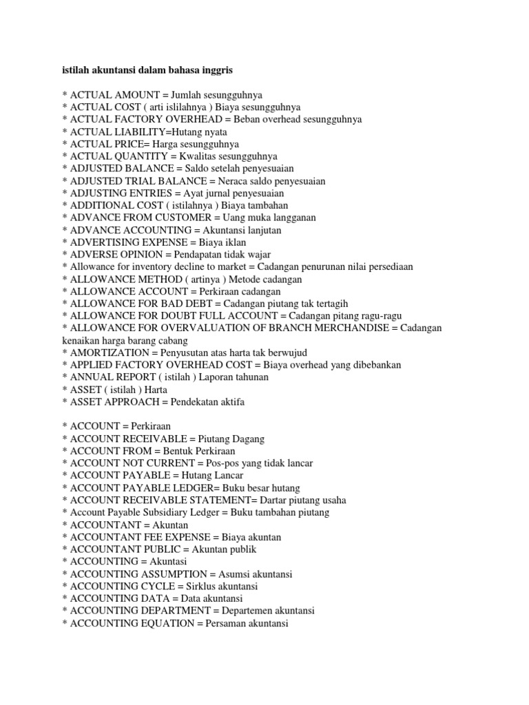 Istilah Akuntansi Dalam Bahasa Inggris