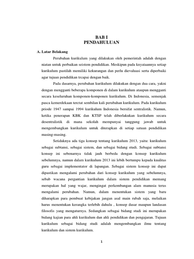 BAB I PENDAHULUAN 1.1 Latar Belakang Pendidikan Indonesia selalu mengalami perubahan kurikulum. Perubahan kurikulum dilakukan un