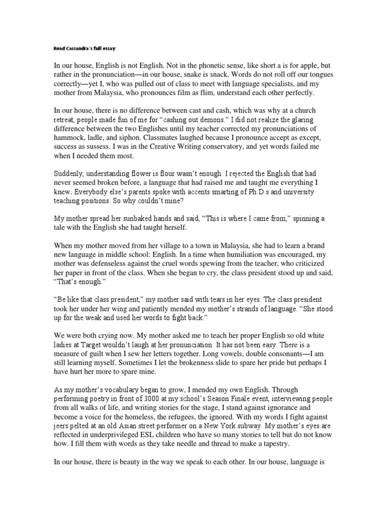 Read Cassandra’s full essay | English Language | Human Voice
