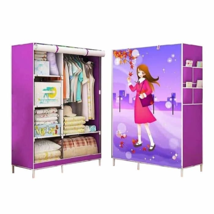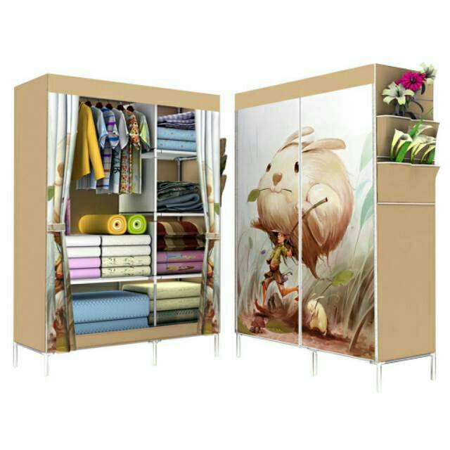 Rak Pakaian / rak baju pakai resleting /Lemari pakaian /Lemari Baju / Lemari Rakit/ Lemari kain/ Lemari portable MOTIF BARU KARAKTER MENARIK (105) | Lazada Indonesia