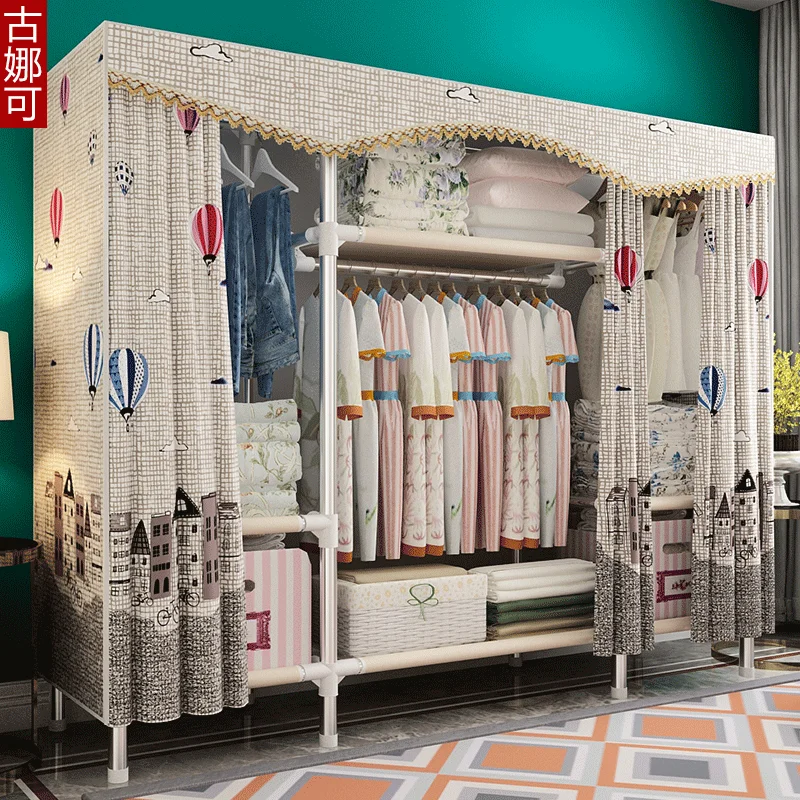 Kain Lemari Pipa Baja Penebalan Pakaian Lemari Lipat Kain Perakitan Bingkai Baja Kain Gantung Pakaian Dapur|Lemari Pakaian| - AliExpress