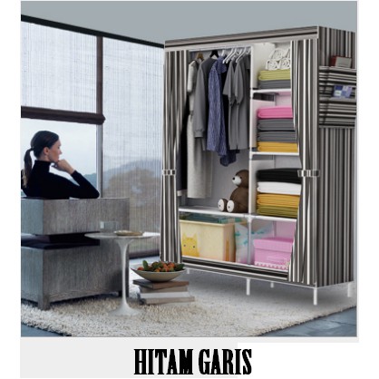 Lemari Pakaian portable/ Lemari Kain Portable Bergaris/ Lemari Lipat - Hitam garis | Shopee Indonesia
