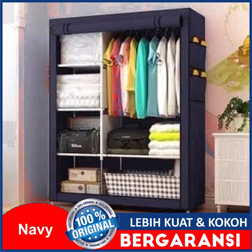 Jual Lemari Rak Baju Pakaian Kain Portable Minimalis Bongkar Pasang Lipat Rakit Kuat Murah Polos | Shopee Indonesia