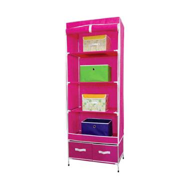 Jual HIERA Lemari Baju Pakaian Portable Plastik Portabel Lucu Susun Lipat Kain Bongkar Pasang Susun - Pink JD.id