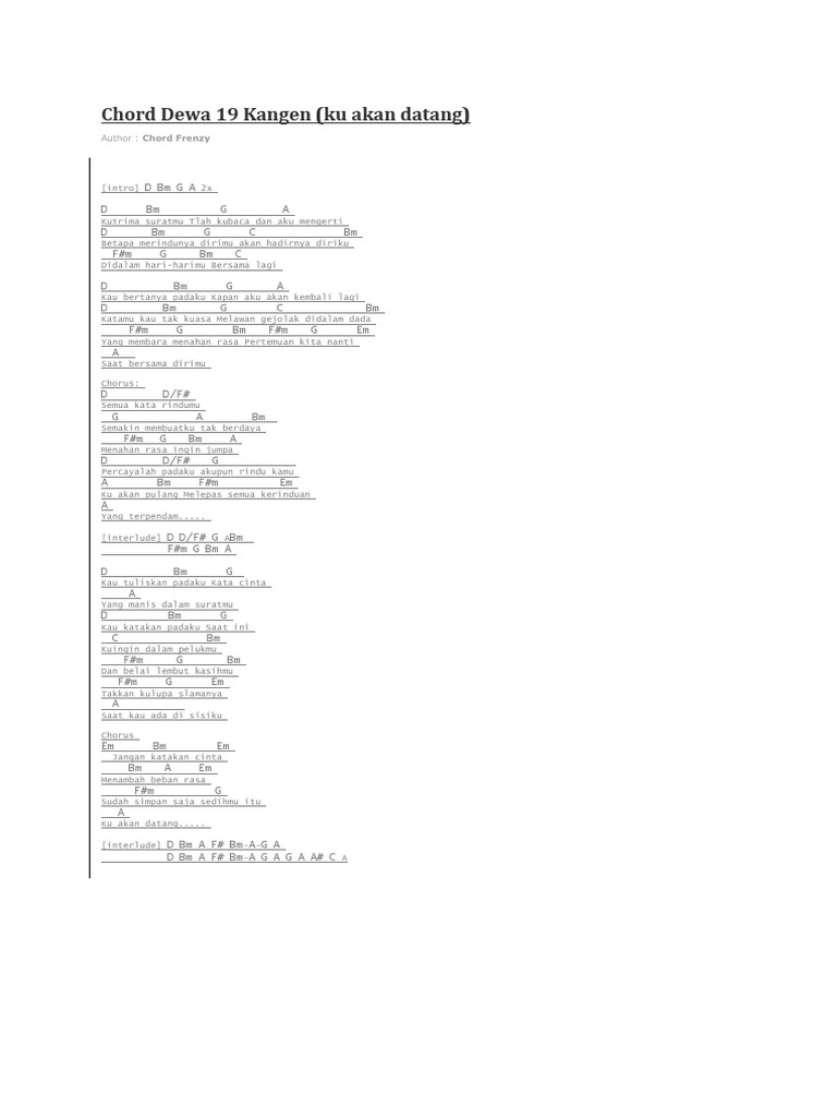Dewa 19 - KANGEN Chord/Kunci Gitar Lirik - Chord Gitar Online