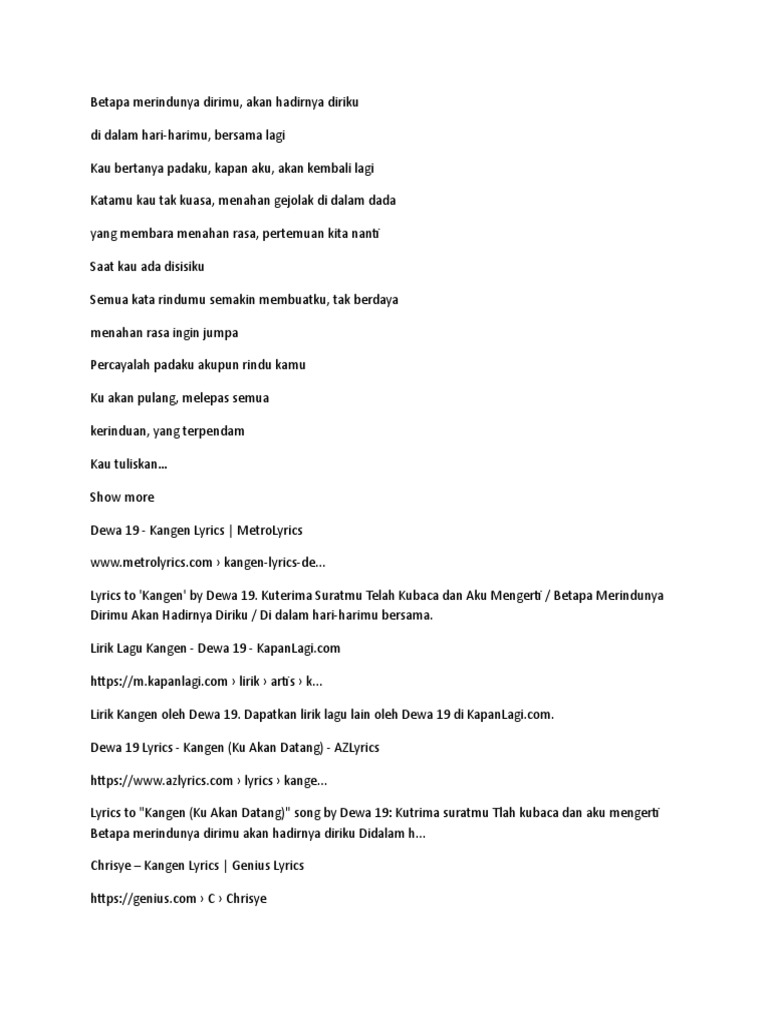 Lirik lagu: Kangen oleh Dewa 19 :: Cari Lirik Lagu di WowKeren.com ?