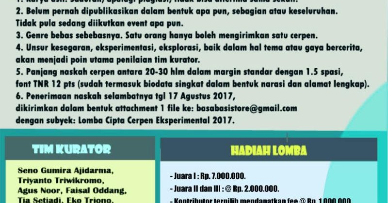 Gratis] Lomba Menulis Cerpen Eksperimental BASABASI 2017 - Info Lomba 2020 Terbaru