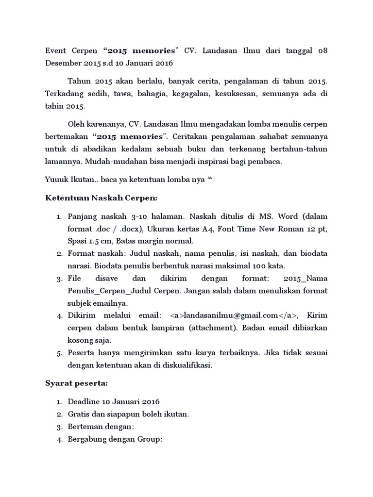 Islampos - Lomba Cipta Cerpen Islampos 2016 LOMBA Cipta… | Facebook