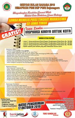 Lomba Menulis Puisi Mahasiswa - Himaprodi Pbsi Ikip Bojonegoro | Info Lomba Menulis
