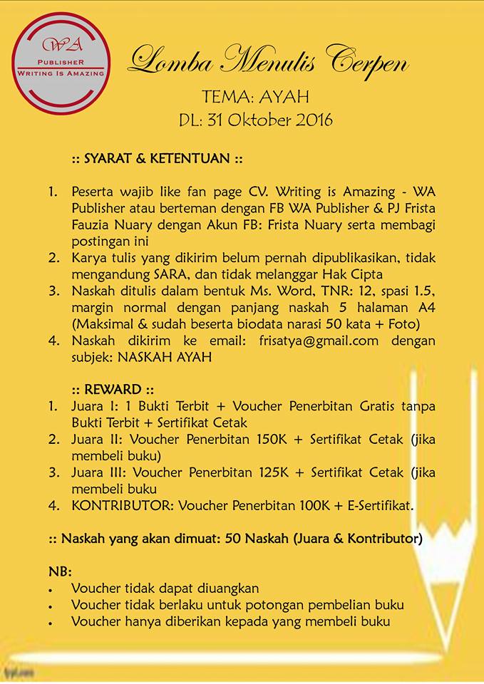 Samudrawan Gallery: Info Lomba Menulis Cerpen Tema Ayah DL. 31 Oktober 2016