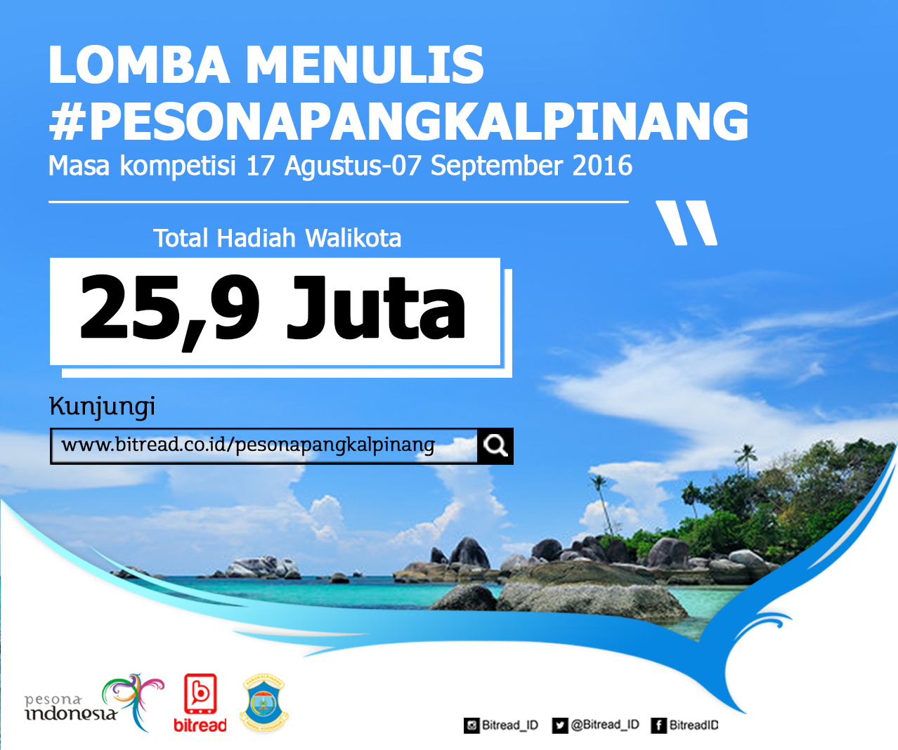 Lomba Menulis Artikel #PESONAPANGKALPINANG Total Hadiah 25,9 juta | Info Lomba Menulis