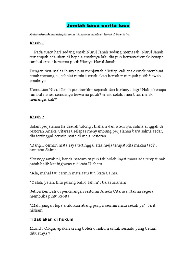 Kumpulan Cerita Lucu Melayu Humor Lawak Jenaka
