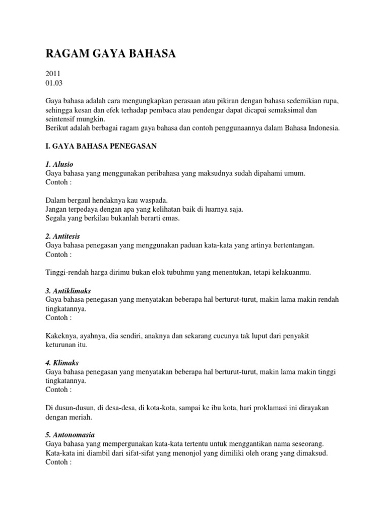 DOC) Macam macam gaya bahasa | Yohanes Roberto - Academia.edu