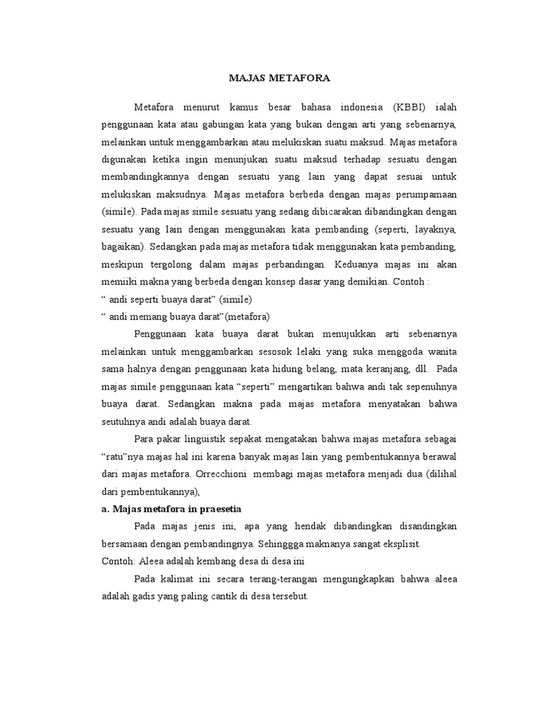 MAJAS METAFORA : Pengertian, Jenis Jenis, Contoh (Lengkap …