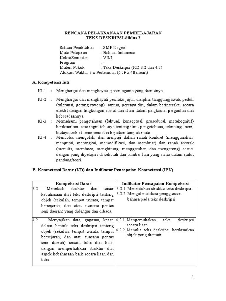 Rencana Pelaksanaan Pembelajaran Teks Deskripsi-Siklus 2