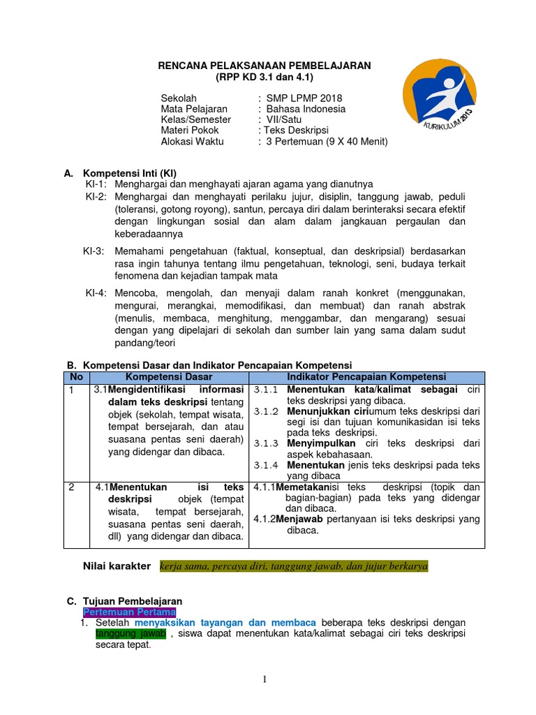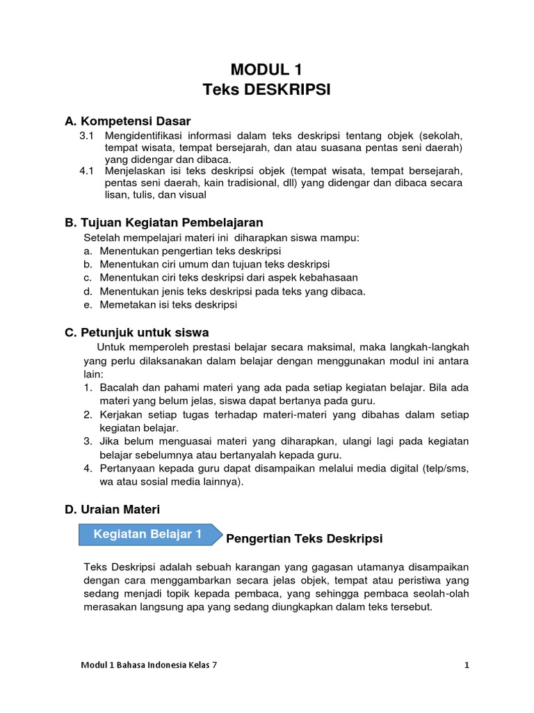 MODUL 1 bahasa indoensia kelas 7 teks deskripsi