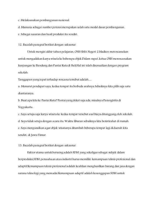 Contoh Soal Bahasa Indonesia Pilihan Ganda Kelas XII SMA/MA/SMK …