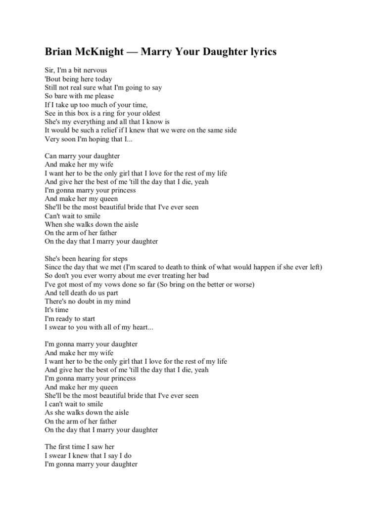 Kumpulan Lirik Lagu - Marry Your Daughter - Bryan Mcknight - Wattpad