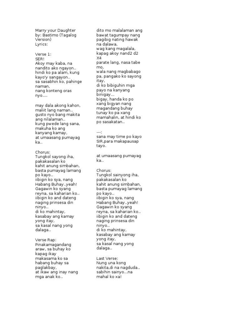 SONG LYRIC - Marry Your Daughter - BRKN RBTZ - Wattpad