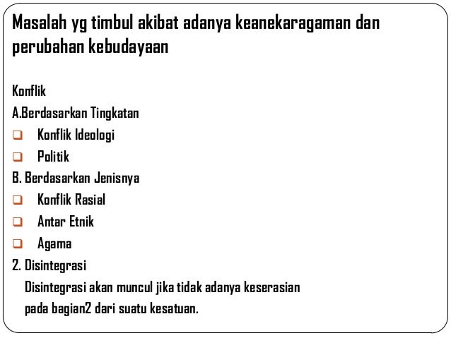 Masalah Yang Timbul Akibat Keanekaragaman Dan Perubahan Kebudayaan