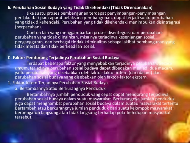 sebutkan faktor penyebab perubahan sosial budaya? - Brainly.co.id
