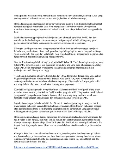 Membuat Cerpen Yang Mengangkat Kehidupan Remaja Di Daerahmu