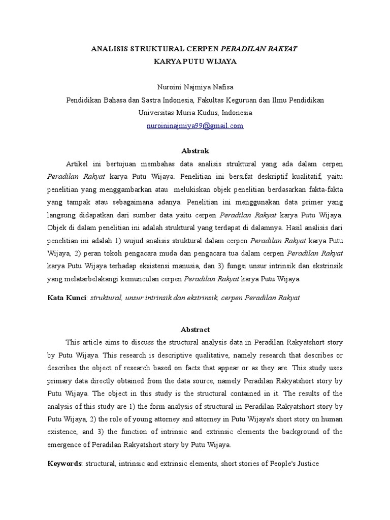 DOC) ANALISIS STRUKTURAL CERPEN “BAJU"RATNA INDRASWARI IBRAHIM | Muza Farsyah - Academia.edu