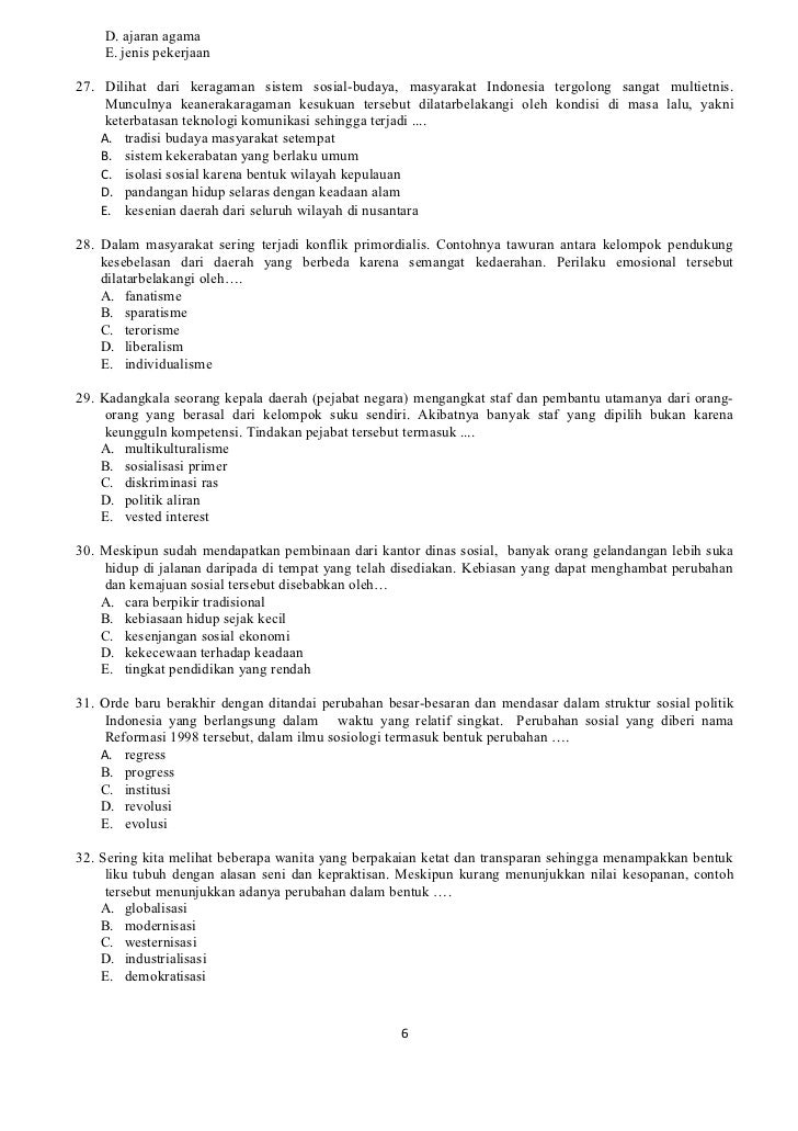 SOAL PREDIKSI SOSIOLOGI UN 2012