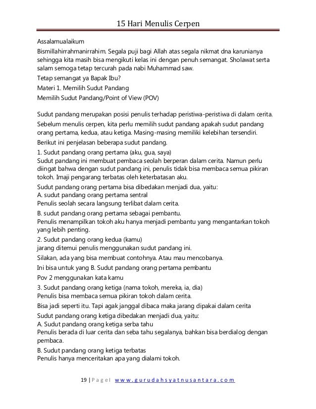 Menulis cerpen dari peristiwa yg dialami sendiri menggunakan sudut …