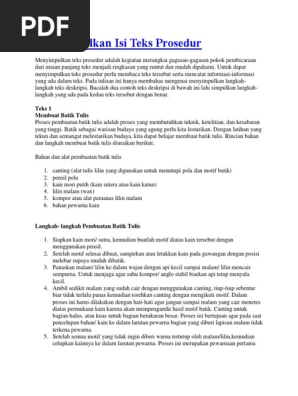 Mengidentifikasi bagian-bagian Teks Prosedur.Teks 1 (cara membuat batik). Teks 2 (cara mencuci - Brainly.co.id