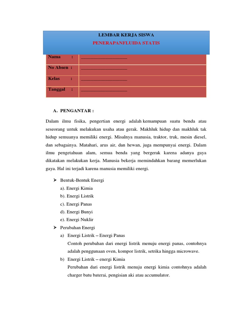 Energi dalam Kehidupan: Bentuk, Perubahan dan Sumber Energi …