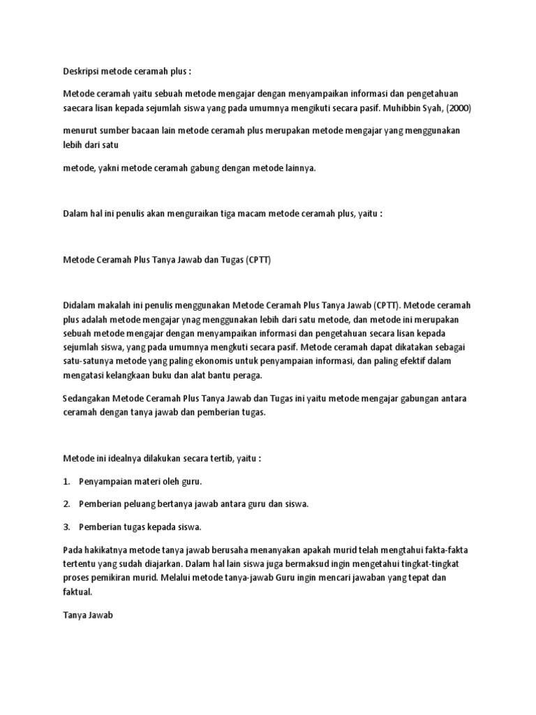 Deskripsi Metode Ceramah Plus
