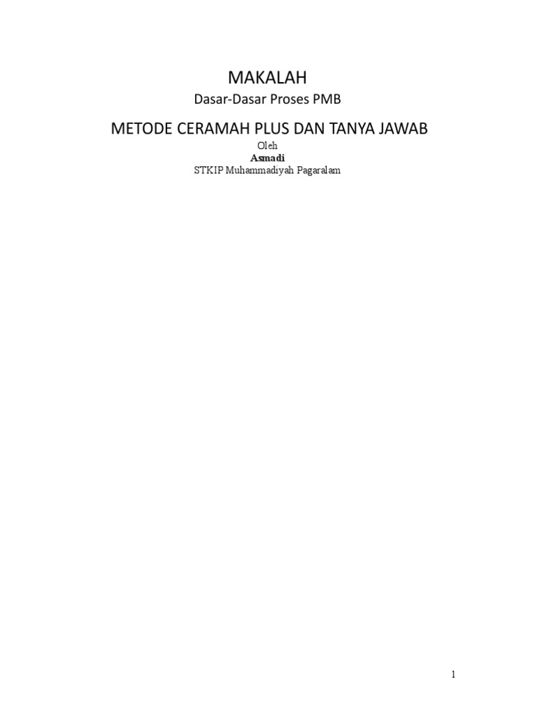 Makalah Dasar Dasar Prosees Pmb Metode Mengajar Ceramah Plus
