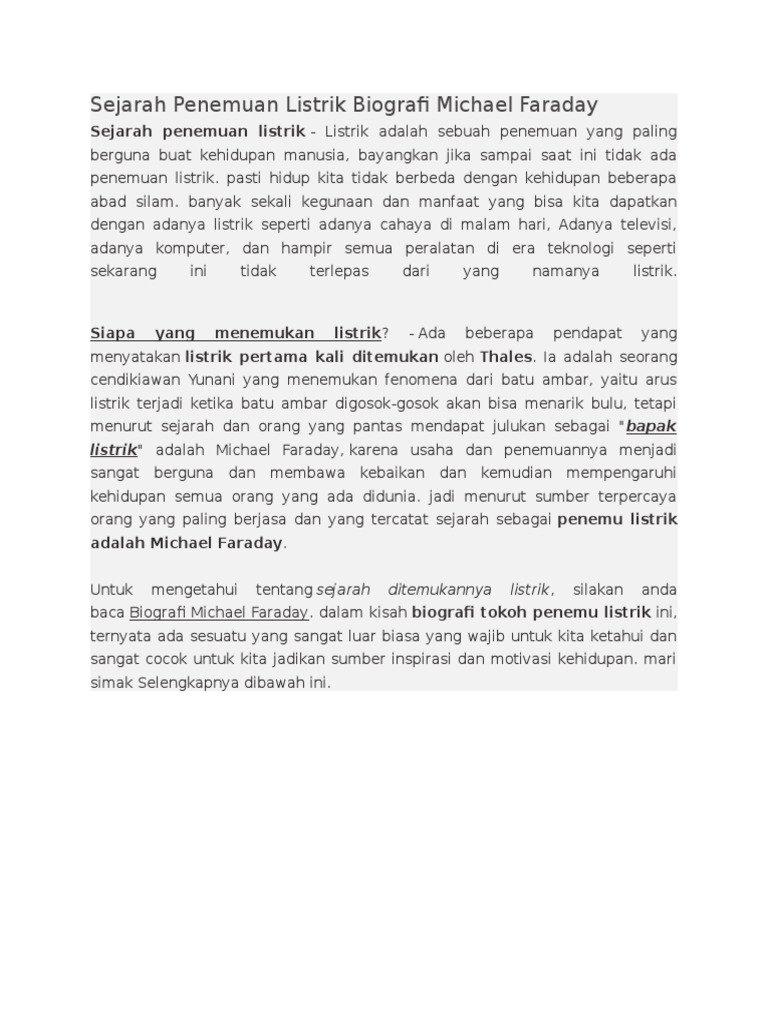 Biografi Michael Faraday Penemu Listrik _ DUNIA LISTRIK - [PDF Document]
