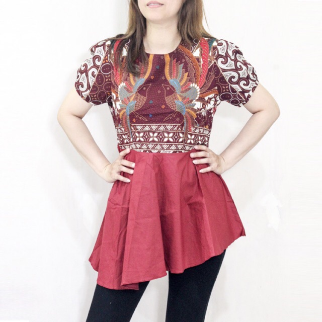Baju Atasan Wanita Batik Kombinasi Polos | Belanja Murah Ada Diskon