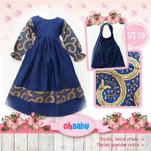Ankho_Shop] VI 19 Gamis Anak Batik Kombinasi Polos Navy Ohbaby | Shopee Indonesia