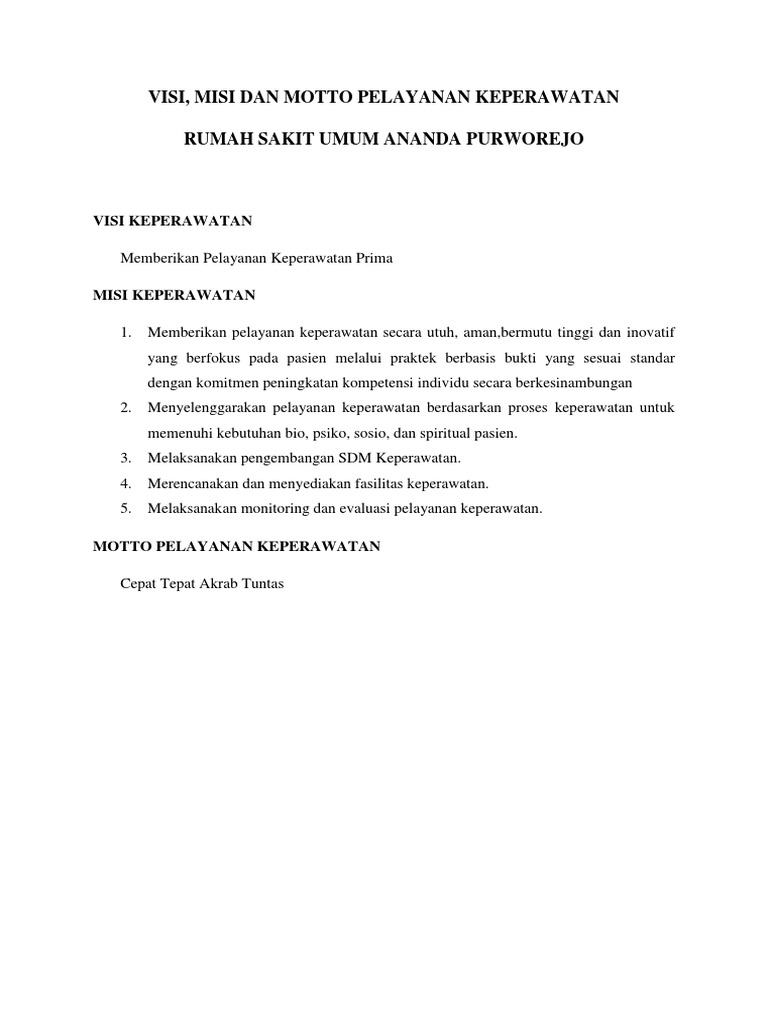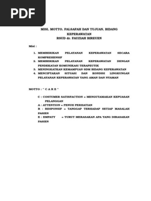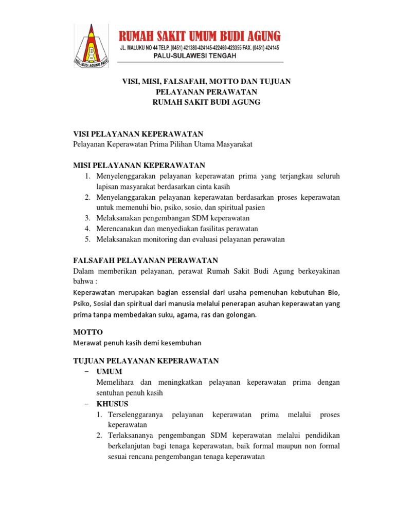 Falsafah Visi Misi Tujuan Pelayanan Keperawatan