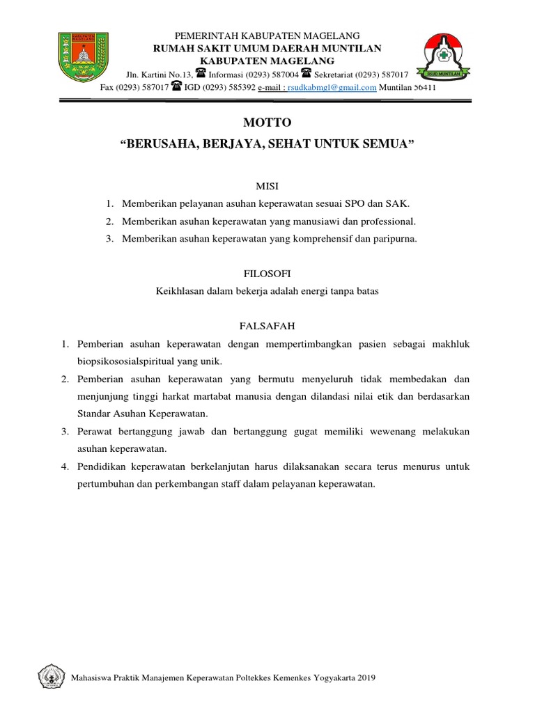 Motto “Berusaha, Berjaya, Sehat Untuk Semua”: Rumah Sakit Umum Daerah Muntilan Kabupaten Magelang