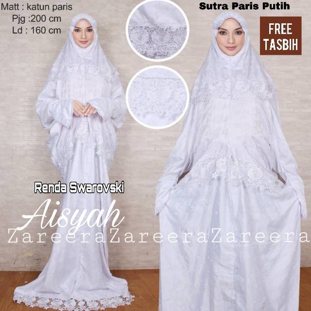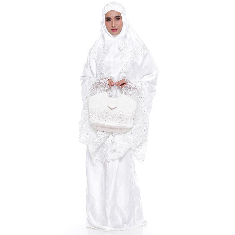 Mukena Terusan Sutra Paris Renda Swarovsky Putih | Shopee Indonesia