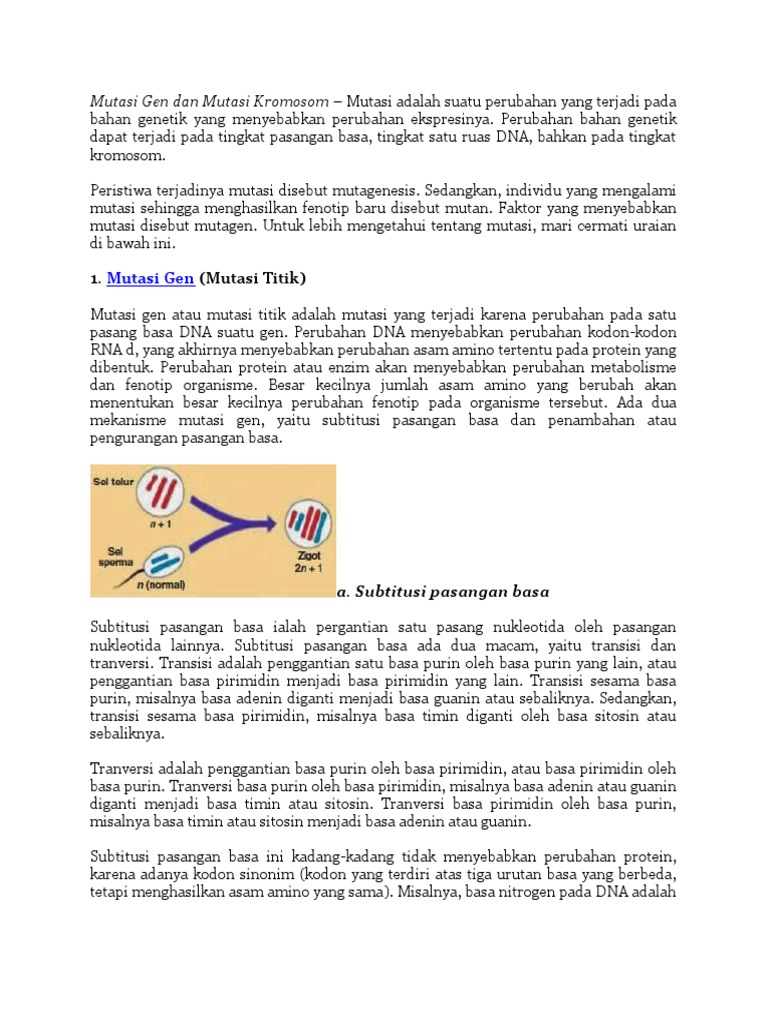 Mutasi, Sub Bab Pengertian dan Mutasi Gen - Biologi Edukasi …