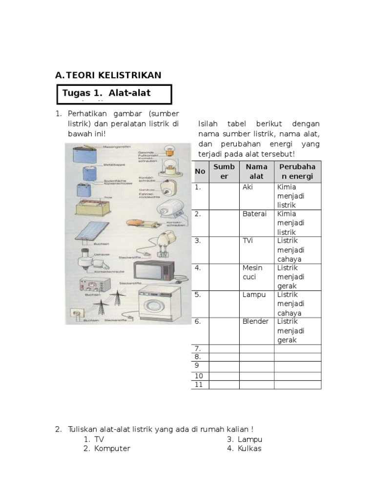 Nama nama peralatan listrik dan perubahan energinya ? - Brainly.co.id