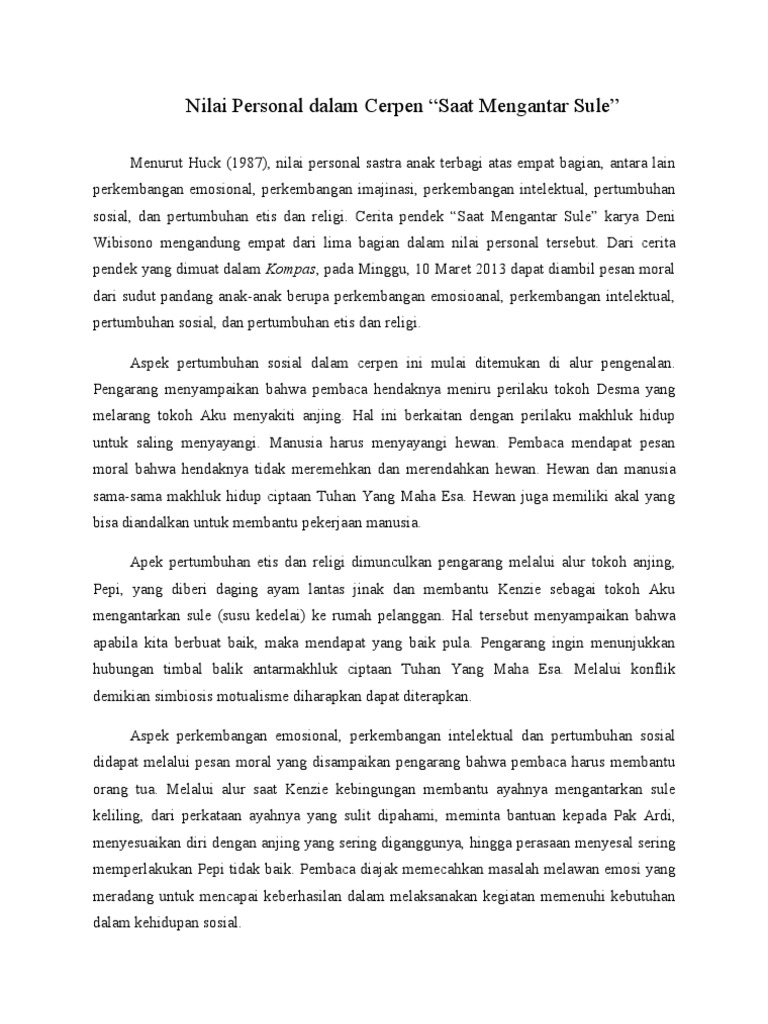 Nilai Personal dalam Cerpen “Saat Mengantar Sule”