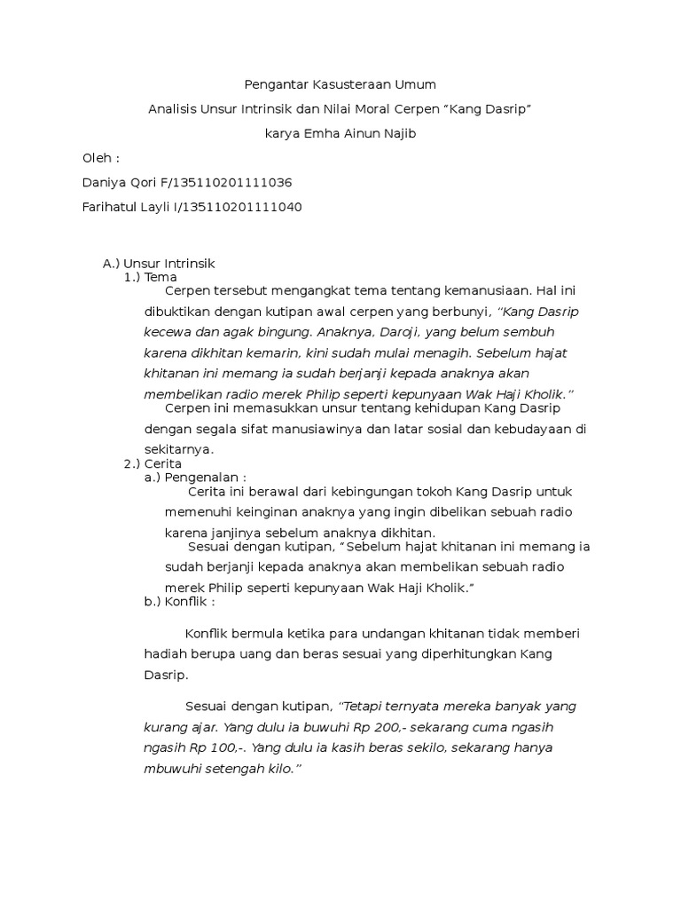 Analisis Unsur Intrinsik Dan Nilai Moral Cerpen
