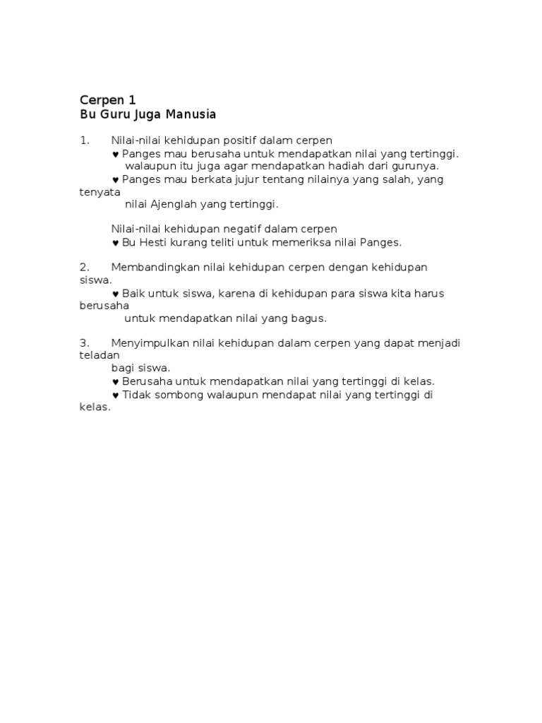 Carilah Nilai Nilai kehidupan yang terdapat dalam cerpen tersebut! - Brainly.co.id