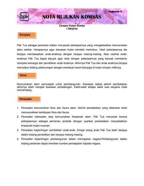 Cerpen Bawod (K): Sinopsis, Tema, Persoalan, Nilai, Pengajaran …